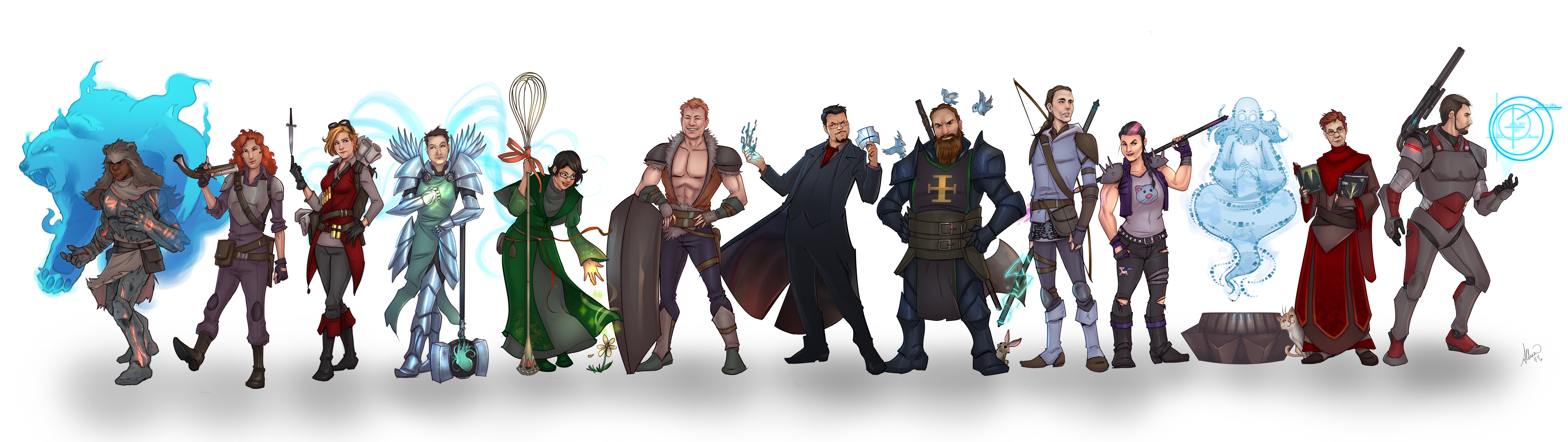 What is so phenomenal about this project is the sheer amount of tiny details that went into each and every portrait. From the moment it was unveiled yesterday afternoon, I literally just kept pouring over the details and finding little things. For example on Gabri the Cooking Mage’s Whisk Staff… there are all these tiny carrots at the bottom. Ashgar similarly is this perfect amalgam of all of these things that we think of when it comes to him… the Earth Mage magic nature… with the shape shifting feral druid spirit behind him that he is just about to shift into. The one that I cannot get over is the portrait of me however. It is this juxtaposition of big dark heavily armored axe wielding warrior… with the whole friend of the woodland creatures thing. We decided that it is now canon that the woodland creatures helped me put on the armor in the same manner as Cinderella. The birbs however have a second meaning in that they are all bluebirds…. the symbol of twitter which my friends are constantly poking fun at me over. There is even the detail of the belt… because we have had all of these conversations about how I really liked the 90’s comic book style of having way too many belts on EVERYTHING. I am sure to strangers, this is just a well rendered image… but to those of us in it… it absolutely captures the soul of every single person. The only way this would have ever worked is because Tam supplied a ton of details… but also that Ammo knows each of us extremely well so was able to fuse the things he was telling her with the things she just inherently knew. When it happened last night… I literally had the sudden desire to run around outside making random strangers look at just how awesome it was. So there was no way we were getting past today’s post without talking about it. I am so completely enamored with each and every portrait, that all I can really think to do is just say thanks to Tam and Ammo for making it happen.