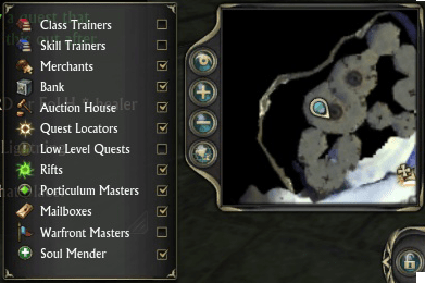 One thing you will notice missing from the list is professions.  Profession resource tracking is handled a little bit differently in this game than that of WoW.  When you learn a profession you get spells that toggle on and off the tracking for that gathering profession.  This was a little weird to get used to, but I appreciate it in the long run. There are various kinds of conditional tracking like the Reaver “Track Death Creatures”, that if included in the checkbox list would make it extremely cluttered.  Trion has done a great job of presenting lots of information in a very clean interface.