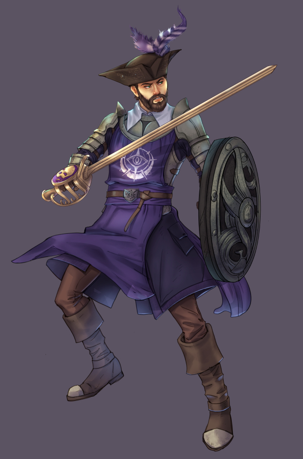 I am extremely happy with how this latest commission turned out. I apparently made it way more challenging than I expected to with that specific sword, shield, and the tricorn hat. This character also includes way more flowing cloth than is my normal for characters. Ammo did an awesome job of bringing to life my sword and shield character.