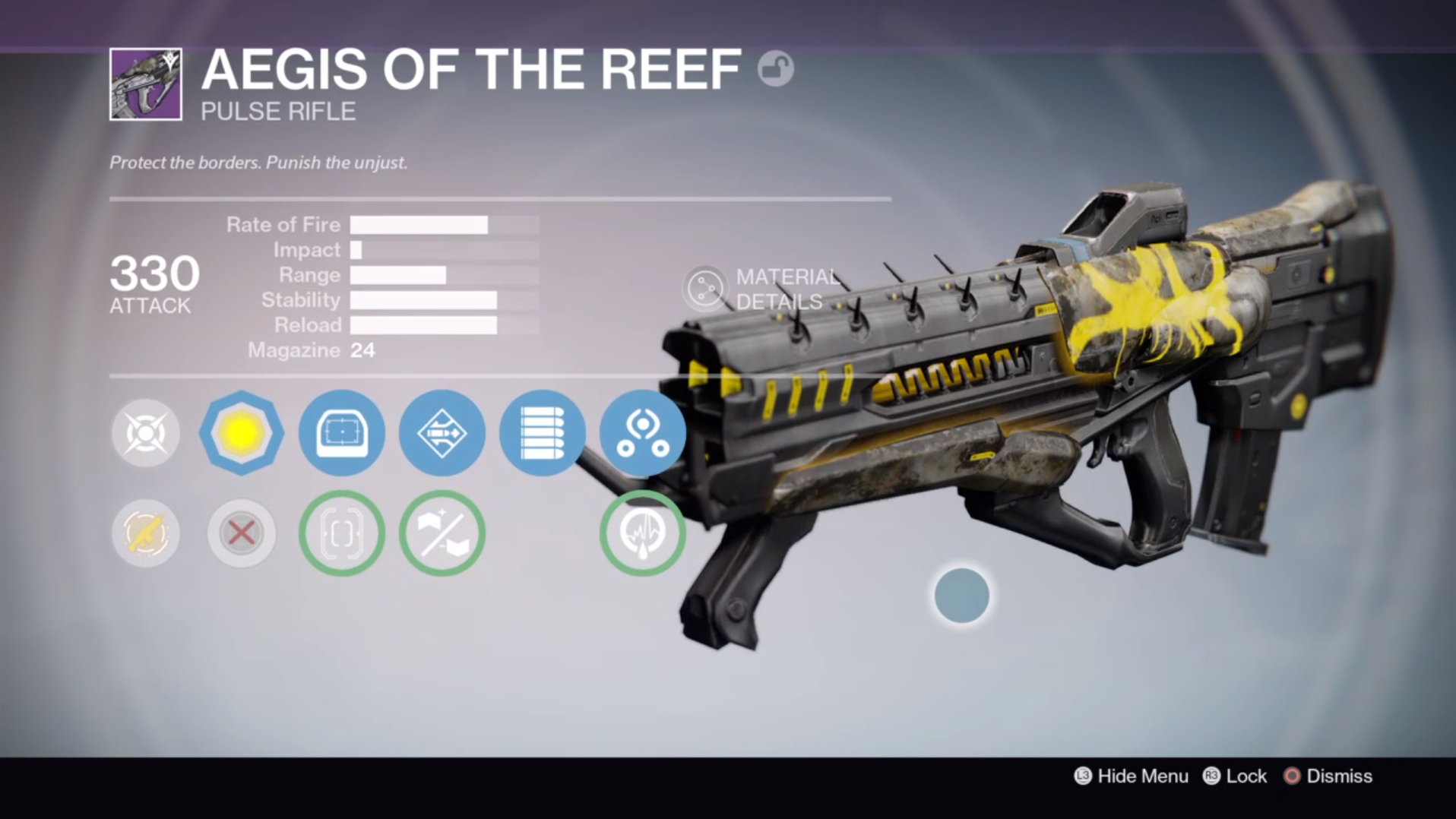 As far as drops worth mentioning… I picked up a 330 Aegis of the Reef, which is the Taken themed Pulse rifle. So far I have to say I am in love with this thing and it dropped with a solid set of perks. In the first slot it came with Send It and Reinforced Barrel… which since the gun already has decent stock stability I have chosen Send It. In the second tier it came with Full Auto, which is an interesting perk to get on an already stable pulse rifle, but unfortunately you can really burn through your ammo reserves quickly. In the last slot it has a very interesting situational case of Third Eye and Life Support, letting me swap between the two based on what I need worse. For the time being I am rocking Third Eye because I love having radar up all of the time. When we got around to running the Nightfall I managed to pick up a second Darkblade Helm, this one sitting at 335 with almost exactly the same stat package as my original one that was only sitting at 305. It was a straight upgrade and I guess I will wear it for awhile to get it nice and upgraded as an option. I had forgotten how much I enjoyed running around with this helmet just because it looks cool. All in all it was a pretty great night, and through all of our shenanigans I managed to gain rank from Variks, Vanguard, Future War Cult and the Cryptarch netting me a bunch of random infusables and legendary marks.