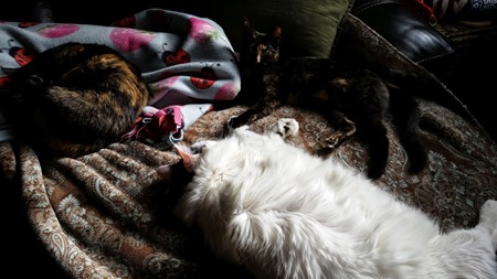 sunningcats While I am posting pictures, I figured I would drop this one on the blog as well.  This is one of those rare moments when all three of our cats are getting along.  It is a great size comparison picture that shows just how insanely huge Chloe is compared to Kenzie and Allie.  As I write this I have Kenzie the kitten sleeping on the top of a computer case on my desk, Allie picking at a box on under my desk, and Chloe sprawled out blocking the exit to my room.  They feel like they should be fed apparently, and are going to guard me until I make it happen.  Every time I stop typing the look around anxiously as though I am going to bolt from the room and try and shake them.  Living with my fuzzy menagerie is definitely an interesting existence, especially when at the same time both ferrets are demanding attention.  These are all the reasons why I often am late getting out the door in the morning, but I would not change it for the world.